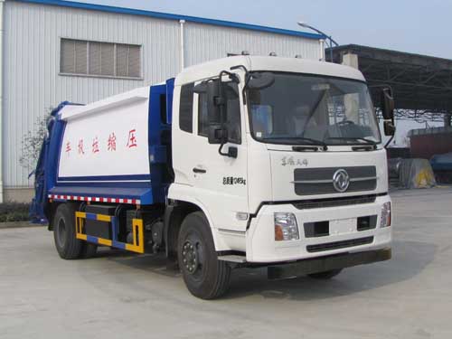 壓縮式垃圾車由汽車二類底盤、密封式壓縮垃圾廂、液壓系統(tǒng)、操作系統(tǒng)組成。整車為全密封型,自動壓縮、自行傾倒、壓縮過程中的污水全部進入污水箱,較為徹底的解決了垃圾運輸過程中的二次污染的問題,關(guān)鍵部件采用進口部件,具有壓力大、密封性好、操作方便、安全等優(yōu)點?蛇x配后掛桶翻轉(zhuǎn)機構(gòu)或垃圾斗翻轉(zhuǎn)機構(gòu)以及后翻轉(zhuǎn)式幾種車型;是用于城鎮(zhèn)袋裝、桶裝、散裝生活垃圾物的收集、運輸、卸料作業(yè)的專用車輛。垃圾被車載垃圾推進器又稱負壓機構(gòu)推壓入車箱,從而使垃圾較高密度、較均勻地分布在車箱內(nèi),直至裝滿為止;該垃圾車的收運方式是目前世界上廣泛采用的垃圾收運方式,其專用裝置的功能均以汽車發(fā)動機為動力,通過液壓機構(gòu)手動或電控操作來實現(xiàn)。壓縮式垃圾車的箱體、裝填器又稱斗體及污水箱均采用優(yōu)質(zhì)炭鋼板全密封焊接結(jié)構(gòu),具有強度高、重量輕、不產(chǎn)生二次污染等優(yōu)點。