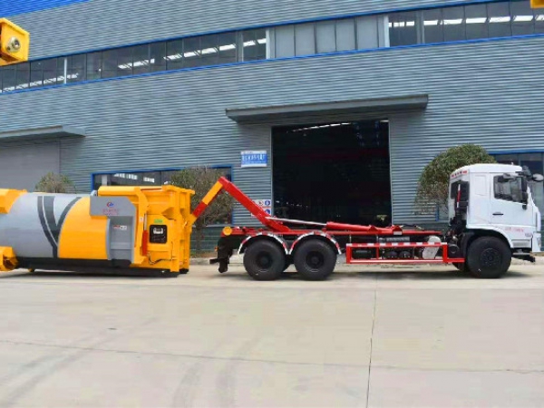 勾臂垃圾車(chē)【車(chē)廂可卸式垃圾車(chē)】車(chē)體和垃圾箱可完全分離,由液壓系統(tǒng)來(lái)完成收箱/放箱,在平日里可將車(chē)載垃圾箱放置到各個(gè)垃圾收集點(diǎn),待垃圾收集滿(mǎn)后,該車(chē)可直接開(kāi)赴收集點(diǎn),通過(guò)液壓系統(tǒng)的操控,可將垃圾車(chē)后座上加裝的勾臂放下,掛住站內(nèi)箱體前端的連接點(diǎn),將垃圾箱拉**車(chē)體的后座上,此時(shí)即可開(kāi)動(dòng)車(chē)輛,將垃圾運(yùn)送垃圾處理站內(nèi),進(jìn)行自卸式傾倒,優(yōu)點(diǎn)就是可一車(chē)配多斗,一輛車(chē)就可以維持?jǐn)?shù)個(gè)垃圾收集站的運(yùn)轉(zhuǎn),效率高,且箱體為密封式設(shè)計(jì),不會(huì)造成二次污染。