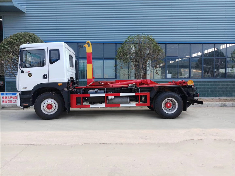勾臂垃圾車【車廂可卸式垃圾車】車體和垃圾箱可完全分離,由液壓系統(tǒng)來完成收箱/放箱,在平日里可將車載垃圾箱放置到各個(gè)垃圾收集點(diǎn),待垃圾收集滿后,該車可直接開赴收集點(diǎn),通過液壓系統(tǒng)的操控,可將垃圾車后座上加裝的勾臂放下,掛住站內(nèi)箱體前端的連接點(diǎn),將垃圾箱拉**車體的后座上,此時(shí)即可開動(dòng)車輛,將垃圾運(yùn)送垃圾處理站內(nèi),進(jìn)行自卸式傾倒,優(yōu)點(diǎn)就是可一車配多斗,一輛車就可以維持?jǐn)?shù)個(gè)垃圾收集站的運(yùn)轉(zhuǎn),效率高,且箱體為密封式設(shè)計(jì),不會造成二次污染。