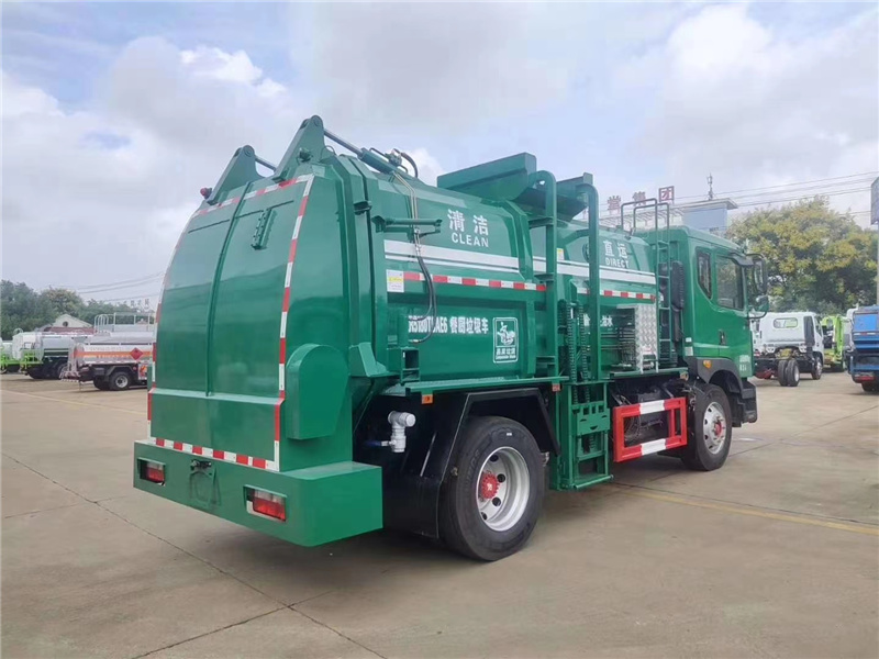方罐式餐廚垃圾車:弧形廂體,箱體內(nèi)可實(shí)現(xiàn)固液分離,推鏟卸料,后蓋液壓開啟/鎖緊(帶耐磨橡膠密封條密封-后門關(guān)閉后滴水不漏),后門液壓鎖緊防誤操作功能,掛桶式提升機(jī),可配合120升、240升標(biāo)準(zhǔn)垃圾桶使用,清洗裝置(帶水箱、液壓馬達(dá)帶動(dòng)高壓泵)。